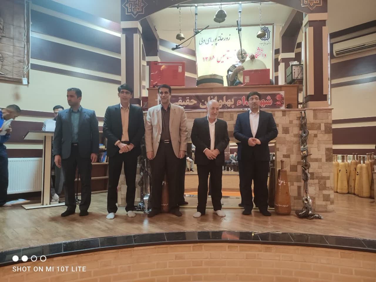 مراسم هفته آموزش با حضور رئیس محترم دانشگاه ، رئیس محترم دانشکده و اعضای هیئت علمی و دانشجویان دانشکده در زورخانه پوریای ولی دانشگاه برگزار گردید. این مراسم با تلاوتی چند از آیات قرآن مجید شروع گردید در ادامه جناب آقای دکتر علی یلفانی رئیس محترم دانشکده و جناب آقای دکترحسین رضوان رئیس محترم دانشگاه به ایراد سخنرانی پرداختند. و درادامه با لوح تقدیر از دانشجویان برتر آموزشی تقدیر بعمل آمد این مراسم با اجرای گروه باستانی کار پوریای ولی و انجام هنرهای زیبای باستانی ادامه پیدا کرد و در آخر نیز به افرادی که به سوالهای طرح شده در مسابقه جواب درست داده بودند با دریافت جایزه تقدیر بعمل آمد.